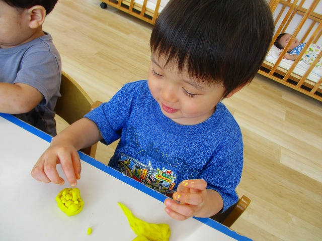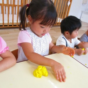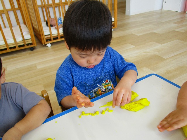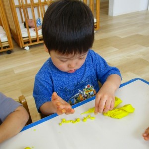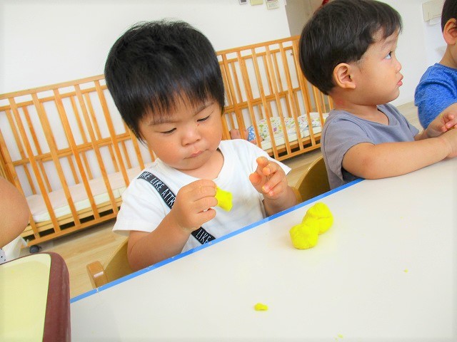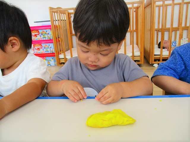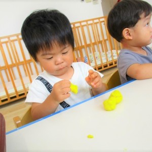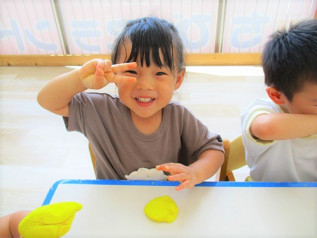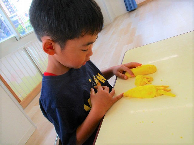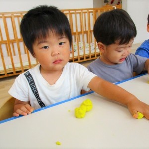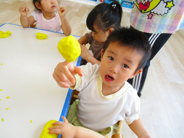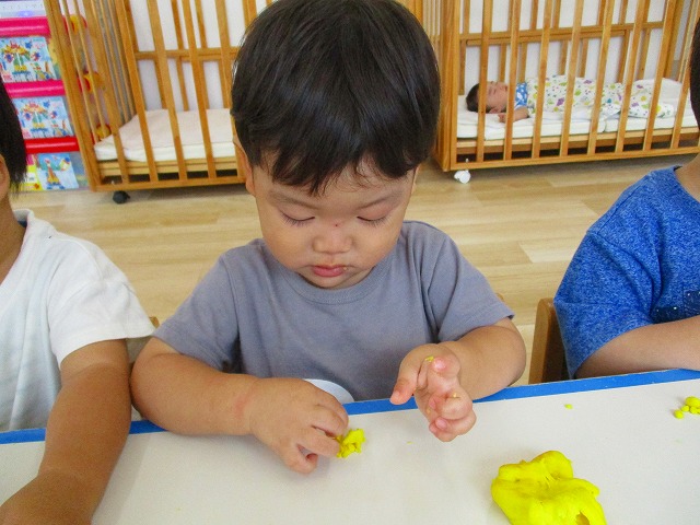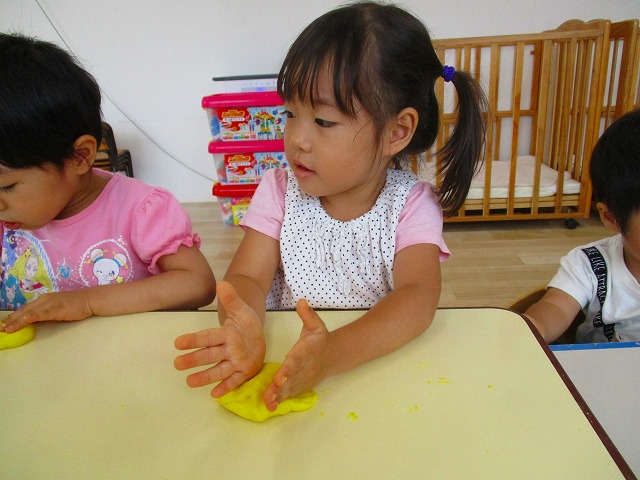 今日はスイミングの日、お留守番のお友達で小麦粉粘土をして遊びました。