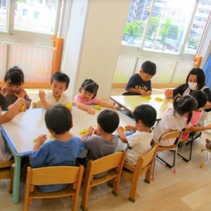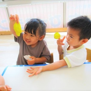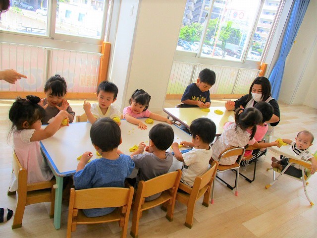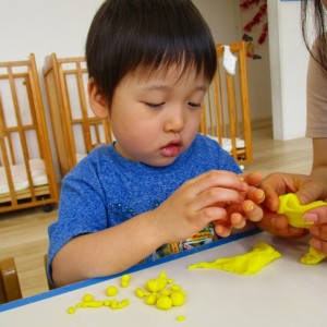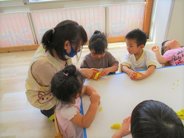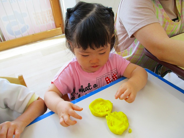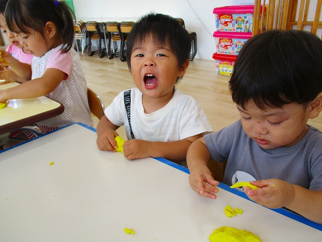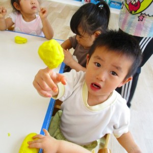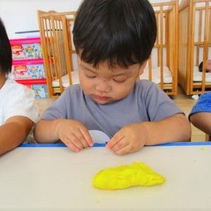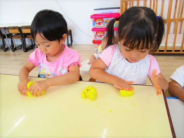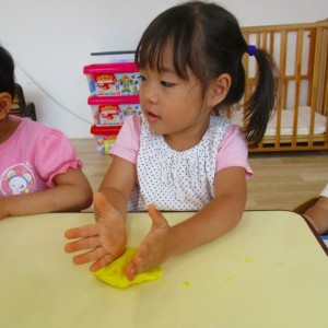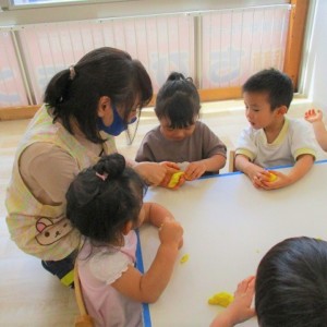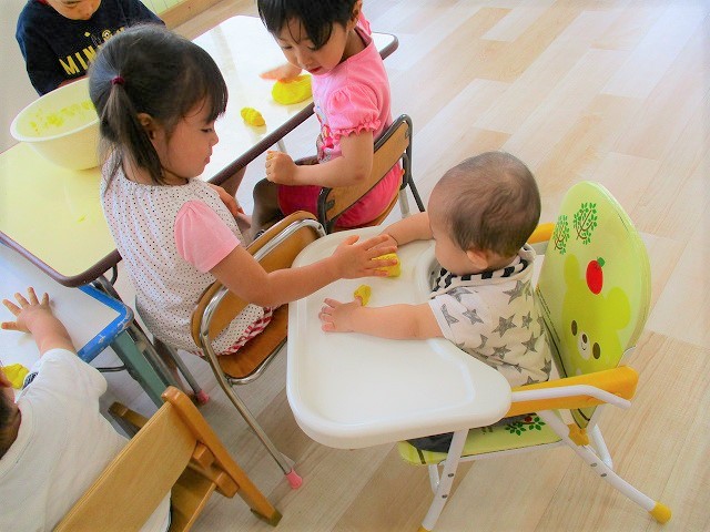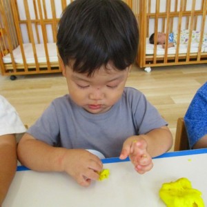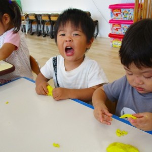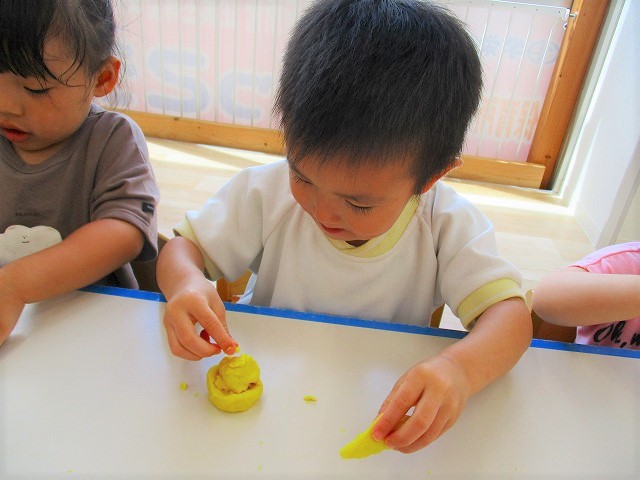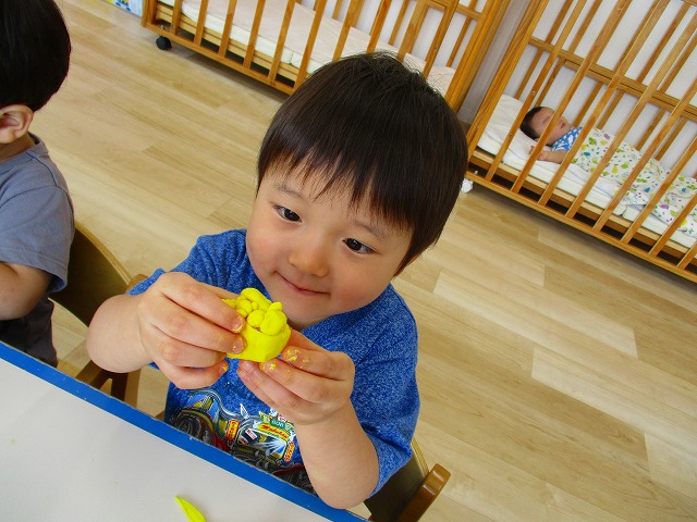 今日はスイミングの日、お留守番のお友達で小麦粉粘土をして遊びました。