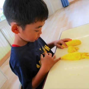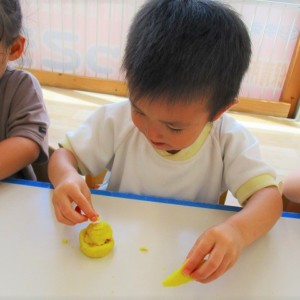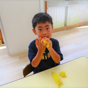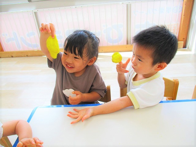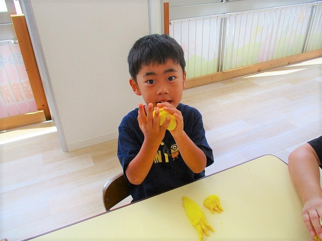 粘土ができあがると 思い思いに🖐手形を押してみたり、🥕人参や🍅トマトを作ったりと